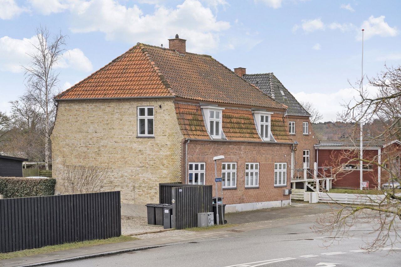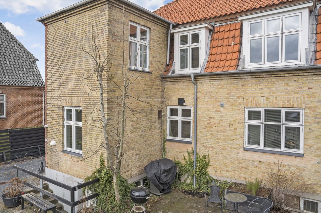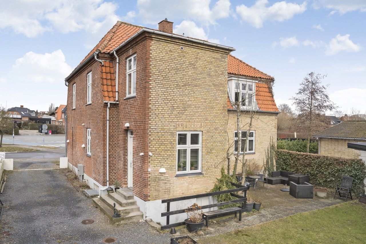 Hovedejendommen er på 549 kvm. grundareal opført i 1930 med rød- og gulmurstensfacader og rødt tegltag, og har hvidrammede dannebrogsvinduer med termoruder, og naturgas installeret. Der er brugsret til et fælles kælderrum og også et eget et af slagsen, samt fælles areal foran ejendommen, fælles indkørsel, fælles parkeringsareal, fælles hyggeligt terrasse- og græsareal, samt egen garage i garage- og værkstedsbygning med rigelig plads til ..., ja hvad end man nu lige ønsker at bruge pladsen dér til - måske skal der skrues på motorcyklen, drejes på keramik-bænken, males på staffeliet, eller noget helt andet.