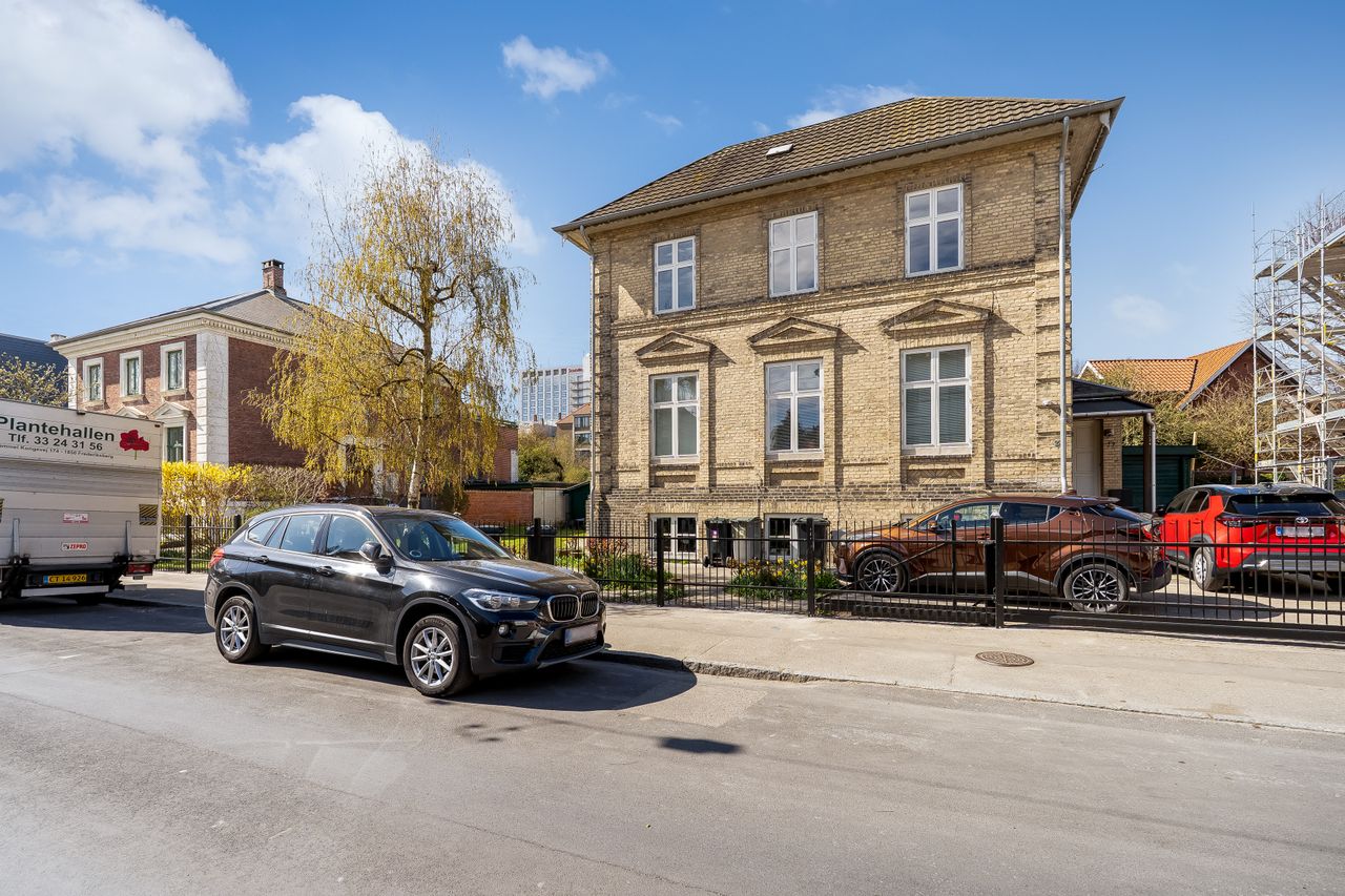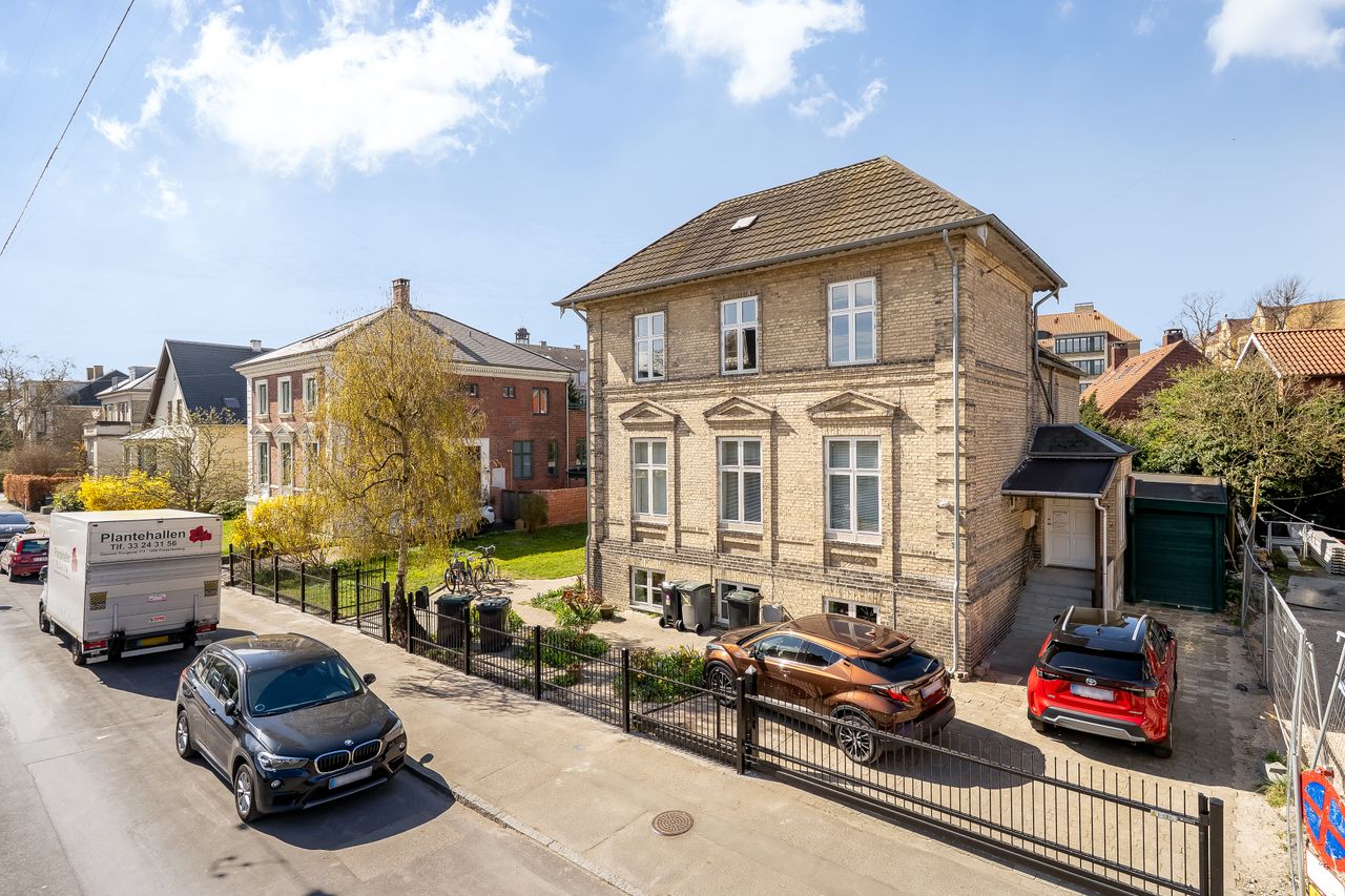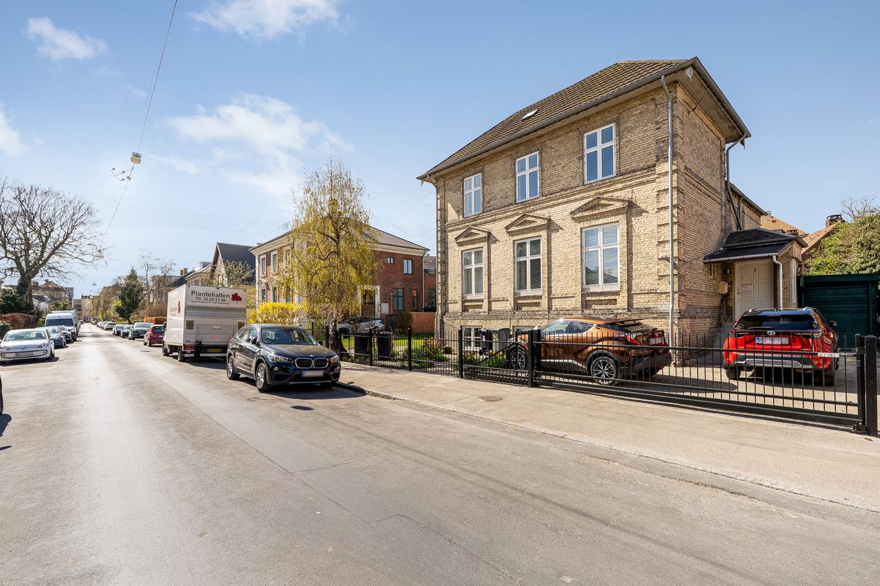 Entré med adgang til alle rum, stor kombineret spise- og opholdsstue, 2 gode soveværelser, spisekøkken, og separat toilet og badeværelse, hvortil kommer udgang til dejlig stor og solrig sydvestvendt balkon. Beliggenheden er virkelig god, og godt og grundigt hyggeligt er der altså dér i dette yderst eftertragtede og meget rolige villakvarter, og så er der alligevel ikke meget mere end 300 meter til Frederiksberg Metro, så til og fra arbejde og Københavns øvrige bydele kommer man ret så let, og på vejen hjem kan man handle ind i Frederiksberg Centret. Og ”lige om hjørnet” er Falkoner Allé, Gammel Kongevej, og Godthåbsvej med et væld af lækre specialbutikker og masser af café- og restaurations-muligheder, samt naturskønne Frederiksberg Have, hvor gå- og løbeturene kan nydes.
